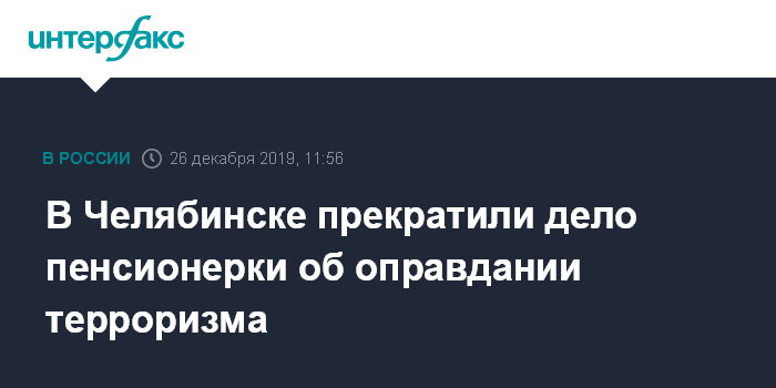 В Челябинске прекратили дело пенсионерки об оправдании терроризма