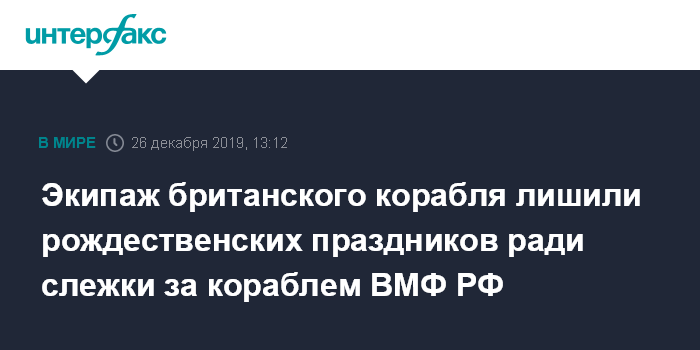 Экипаж британского корабля лишили рождественских праздников ради слежки за кораблем ВМФ РФ