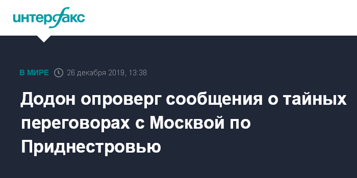 Москва. 26 декабря. INTERFAX.RU - Президент Молдавии Игорь Додон назвал спекуляциями утверждения в местных СМИ о том, что он якобы ведет тайные переговоры по поводу урегулирования приднестровского конфликта.