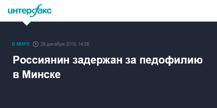 Москва. 26 декабря. INTERFAX.RU - Белорусские правоохранительные органы задержали в Минске россиянина по подозрению в сексуальных связях с несовершеннолетними, сообщили в республиканском МВД.