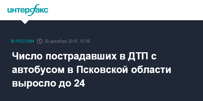 Москва. 30 декабря. INTERFAX.RU - Количество обратившихся к врачам после аварии автобуса из Белоруссии на трассе в Псковской области увеличилось до 24, сообщает пресс-служба администрации региона.