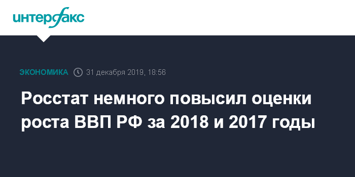 Предварительную оценку динамики ВВП за 2019 год, как ожидается, Росстат опубликует в конце января 2020 года. За январь-сентябрь 2019 года ВВП РФ, по данным Росстата, вырос на 1,1%. Минэкономразвития РФ прогнозировало рост ВВП РФ в 2019 году на 1,3%.