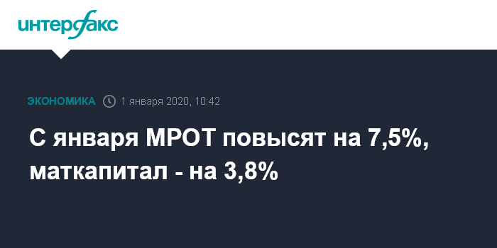 С января МРОТ повысят на 7,5%, маткапитал - на 3,8%