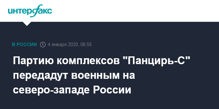 В декабре 2019 года министр обороны РФ Сергей Шойгу сообщил, что 2020 году российские военные получат шесть дивизионных комплектов комплексов "Панцирь-С".