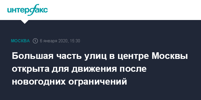 Москва. 6 января. INTERFAX.RU - Основные перекрытия в центре столицы, связанные с празднованием Нового года, уже сняты, сообщили "Интерфаксу" в пресс-службе Центра организации дорожного движения (ЦОДД) в понедельник.