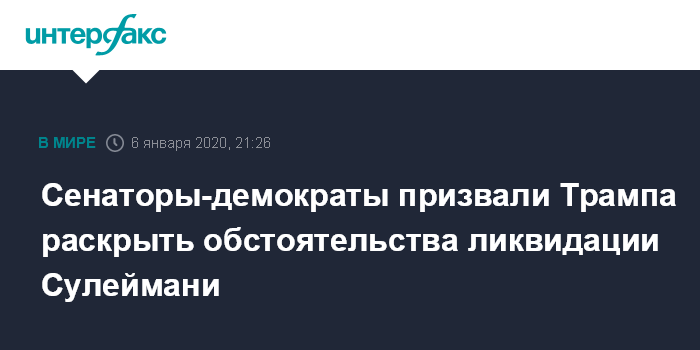 Сенаторы-демократы призвали Трампа раскрыть обстоятельства ликвидации Сулеймани