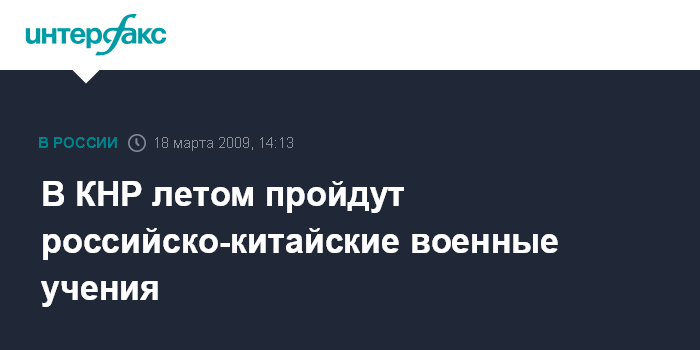 Москва. 18 марта. INTERFAX.RU - Двустороннее российско-китайское военное учение планируется провести летом 2009 года на территории КНР, сообщили в среду "Интерфаксу-АВН" в Минобороны РФ.