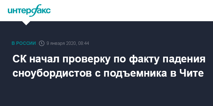 Москва. 9 января. INTERFAX.RU - В Забайкалье Следственный комитет начал проверку информации журналистов о падении двух мужчин с подъемника в горнолыжном комплексе "Высокогорье" в Чите. Об этом сообщила пресс-служба краевого управления комитета.