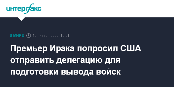 Москва. 10 января. INTERFAX.RU - Исполняющий обязанности премьер-министра Ирака Адель Абдель Махди в телефонном разговоре с госсекретарем США Майком Помпео попросил его направить в Багдад делегацию для подготовки вывода войск международной коалиции с территории республики, сообщают в пятницу западные СМИ.