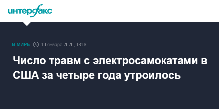 Согласно результатам исследования, опубликованным в журнале JAMA Surgery, число травм, полученных в результате езды на электросамокатах, увеличилось с 2014 по 2018 годы на 222%. За этот период в отделения неотложной помощи были доставлены более 39 тыс. американцев, пострадавших от этих транспортных средств.