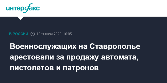 Москва. 10 января. INTERFAX.RU - Ставропольский гарнизонный военный суд арестовал двух военнослужащих одной из воинских частей Минобороны РФ и офицера МВД по делу о сбыте оружия, сообщает пресс-служба суда.