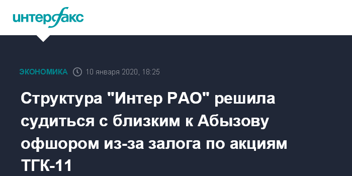 Структура "Интер РАО" решила судиться с близким к Абызову офшором из-за залога по акциям ТГК-11