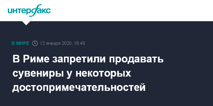 Москва. 12 января. INTERFAX.RU - В Риме запретили продавать сувениры, напитки и фастфуд у популярных туристических достопримечательностей, сообщает газета Express.