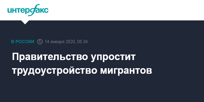Москва. 14 января. INTERFAX.RU - Правительство РФ предстоящей осенью намерено внести на рассмотрение Госдумы законопроект, в котором предлагается освободить от плановых проверок предприятия, привлекающие на работу мигрантов, сообщает во вторник газета "Известия".