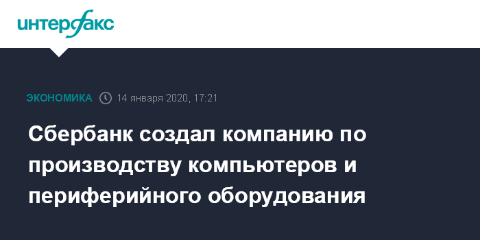 Сбербанк создал компанию по производству компьютеров и периферийного оборудования