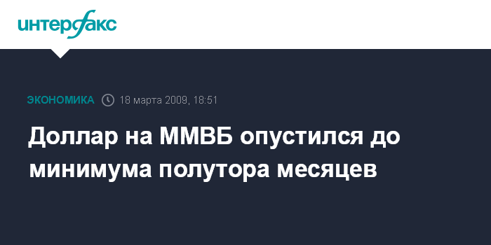 Москва. 18 марта. INTERFAX.RU - Доллар снизился на ММВБ в среду четвертый торговый день подряд, его курс опускался в ходе торгов до минимума с января. Евро, находившийся на ММВБ под давлением в утренние часы, в конце дня резко вырос вслед за падением доллара на Forex. Рубль с утра рос к бивалютной корзине, но ближе к вечеру начал нести потери.
