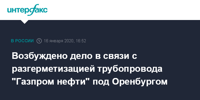 Возбуждено дело в связи с разгерметизацией трубопровода "Газпром нефти" под Оренбургом
