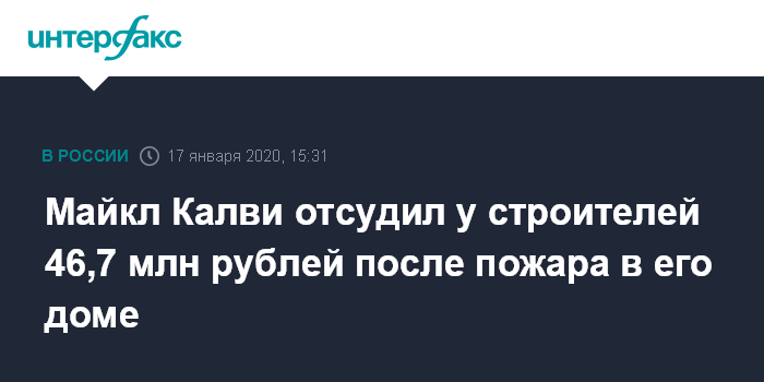Майкл Калви отсудил у строителей 46,7 млн рублей после пожара в его доме