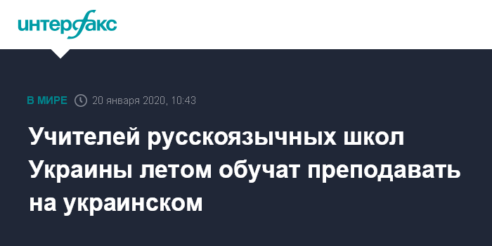 Москва. 20 января. INTERFAX.RU - Учителя русскоязычных школ пройдут курсы повышения квалификации в рамках подготовки к переходу на украинский язык преподавания, сообщила министр образования и науки Анна Новосад.