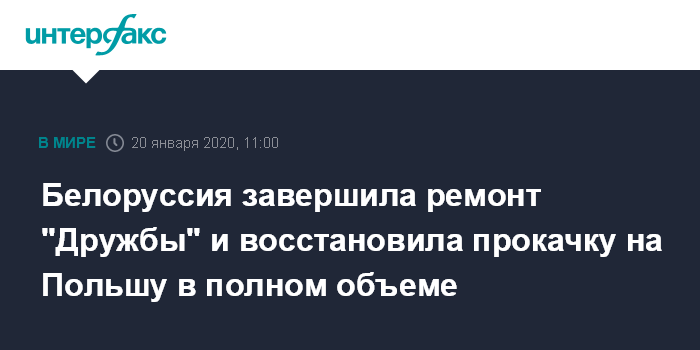 Белоруссия завершила ремонт "Дружбы" и восстановила прокачку на Польшу в полном объеме