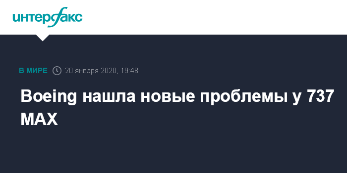 Москва. 20 января. INTERFAX.RU - Американская Boeing Co. обнаружила в программном обеспечении самолета 737 MAX недочеты, о которых раньше не было известно.