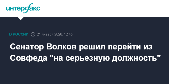 Сенатор Волков решил перейти из Совфеда "на серьезную должность"