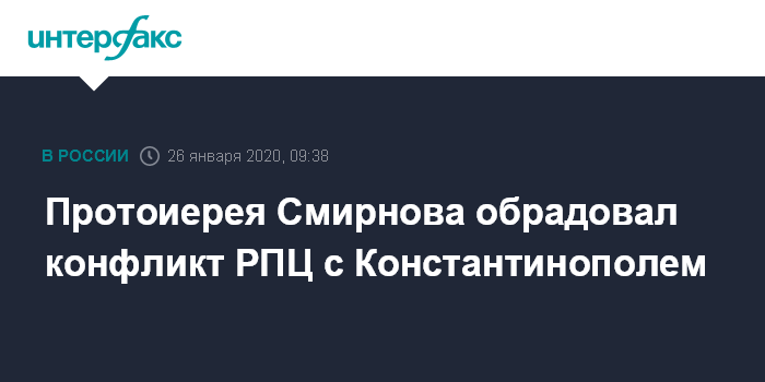 Протоиерея Смирнова обрадовал конфликт РПЦ с Константинополем
