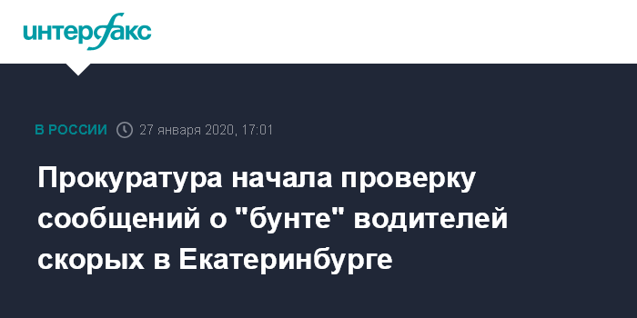Прокуратура начала проверку сообщений о "бунте" водителей скорых в Екатеринбурге