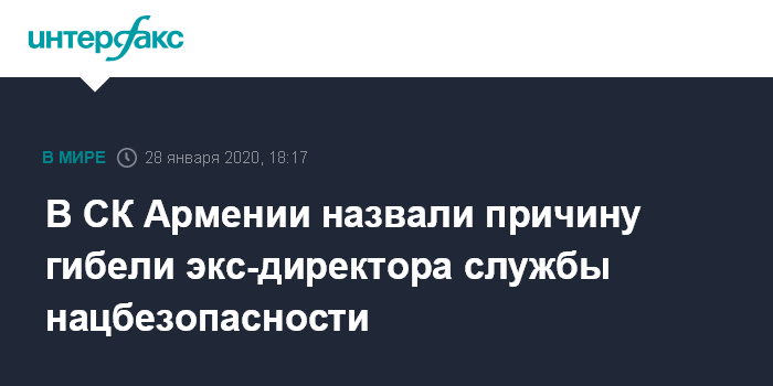 В СК Армении назвали причину гибели экс-директора службы нацбезопасности