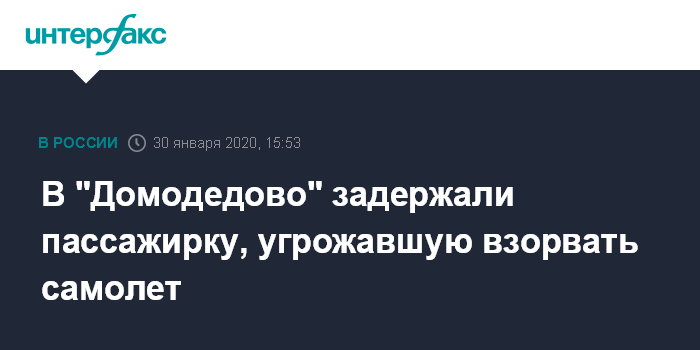 Ранее сообщалось, что пассажирка рейса Симферополь-Москва после посадки в "Домодедово" сообщила о якобы имеющемся у нее при себе взрывном устройстве.
