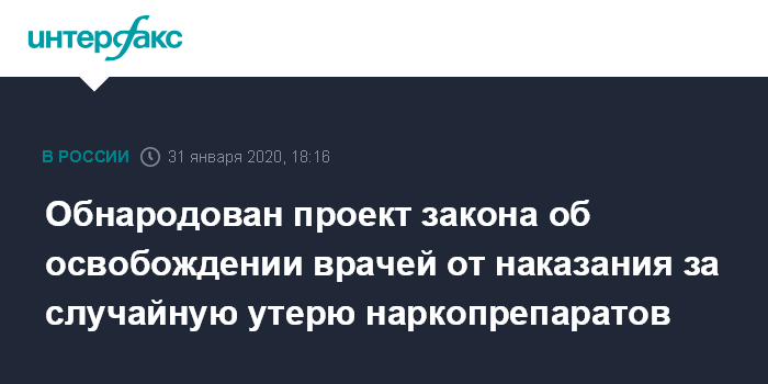 Ранее президент Владимир Путин поручил изменить законодательство так, чтобы сотрудникам медицинских учреждений не грозила уголовная ответственность за случайную утерю наркосодержащих или психотропных препаратов.
