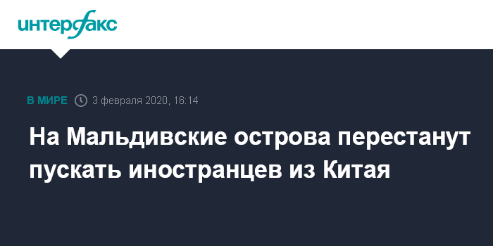 Ранее Мальдивские острова закрыли прямое авиасообщение с Китаем. Семь граждан Мальдив, застрявших в разгар вспышки новой инфекции в Ухане, помогли вывезти из Китая власти Индии. Их сейчас держат на карантине вместе эвакуированными из Уханя гражданами Индии, отмечали в мальдивском МИД.