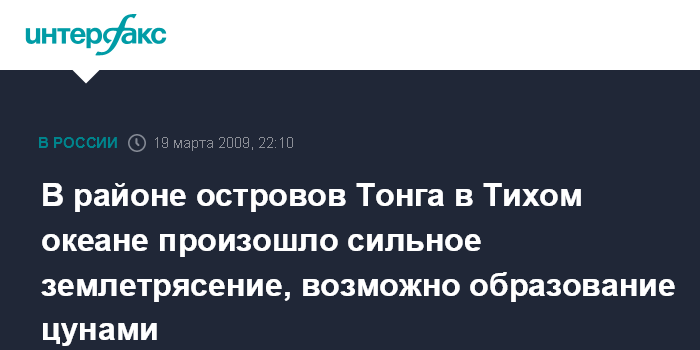 Вашингтон. 19 марта. ИНТЕРФАКС - Землетрясение силой 7,9 баллов по шкале Рихтера отмечено в ночь на пятницу близ островов Тонга в Тихом океане, сообщает американская телекомпания Си-Эн-Эн со ссылкой на данные Службы геологического наблюдения США.