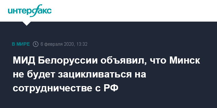 МИД Белоруссии объявил, что Минск не будет зацикливаться на сотрудничестве с РФ