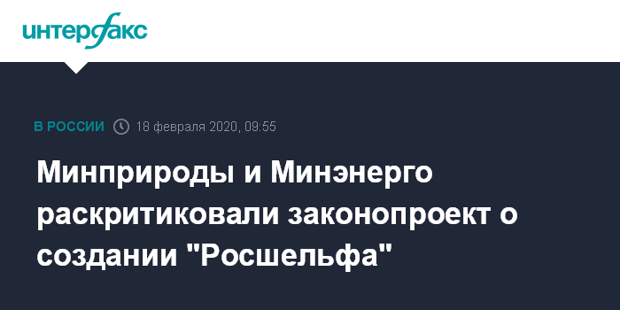 Москва. 18 февраля. INTERFAX.RU - Минприроды и Минэнерго раскритиковали законопроект Минвостокразвития о создании госкорпорации "Росшельф", сообщает газета "Коммерсантъ" со ссылкой на ведомственную переписку.