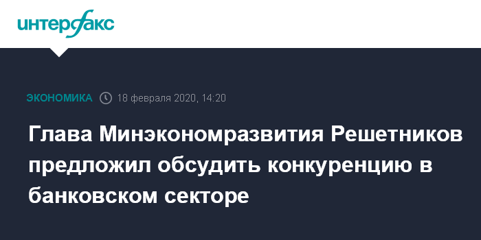 Москва. 18 февраля. INTERFAX.RU - Тема развития конкуренции в банковском секторе, которой много внимания уделял экс-глава Минэкономразвития Максим Орешкин, осталась и в повестке его преемника, Максима Решетникова.