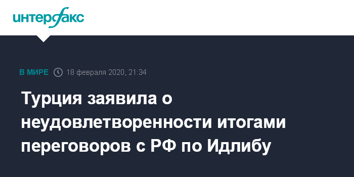 Москва. 18 февраля. INTERFAX.RU - Анкара недовольна результатами, которые пока что приносят турецко-российские переговоры по ситуации в сирийской провинции Идлиб, заявил во вторник специальный советник и пресс-секретарь президента Турции Ибрагим Калын.