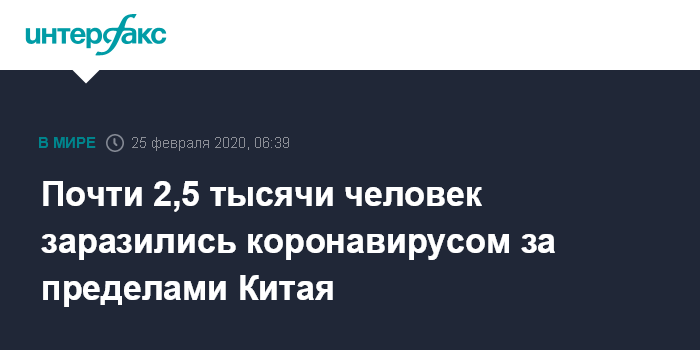 Почти 2,5 тысячи человек заразились коронавирусом за пределами Китая