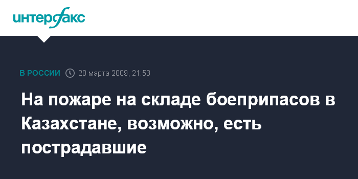 Шымкент. 21 марта. INTERFAX.RU - на юге Казахстана горит склад боеприпасов вооруженных сил (ВС) Казахстана, подтвердил агентству "Интерфакс" оперативный дежурный регионального департамента по ЧС.