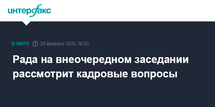 Ранее пресс-служба Верховной рады сообщила, что украинский парламент соберется на внеочередное пленарное заседание в 16:00 4 марта 2020 года по требованию президента Украины Владимира Зеленского. Причины созыва внеочередного заседания и вынесенные на рассмотрение вопросы в сообщении не указывались.