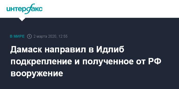 Дамаск направил в Идлиб подкрепление и полученное от РФ вооружение