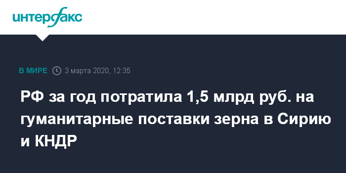 РФ за год потратила 1,5 млрд руб. на гуманитарные поставки зерна в Сирию и КНДР