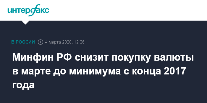 Минфин РФ снизит покупку валюты в марте до минимума с конца 2017 года