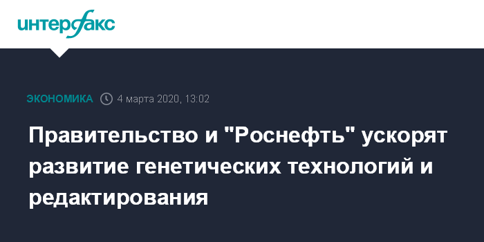 Предполагается, что правительство и "Роснефть" создадут центр комплексных исследований в области генетических технологий и генетического редактирования, создадут условия для стимулирования генетических исследований для промышленности и медицины, разработают предложения по изменениям нормативно-правовой базы.