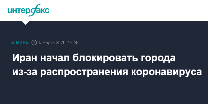 Москва. 5 марта. INTERFAX.RU - Минздрав Ирана объявил о начале установки КПП на дорогах, чтобы ограничить поездки между городами, и рекомендовал согражданам меньше использовать бумажные купюры, сообщает АР. Эти объявления в телеэфире сделал глава ведомства Саид Намаки.