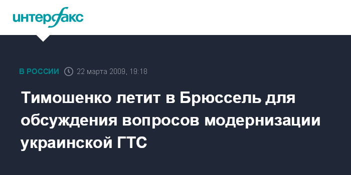 Киев. 22 марта. ИНТЕРФАКС-УКРАИНА - Премьер-министр Украины Юлия Тимошенко отбыла в воскресенье вечером в Брюссель для участия в конференции, посвященной модернизации украинской газотранспортной системы.