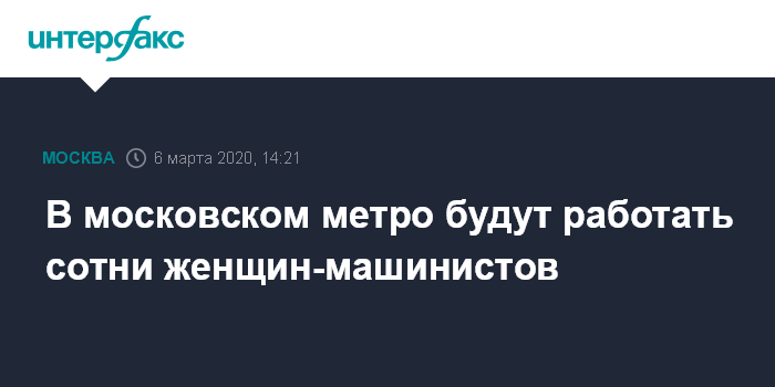 Москва. 6 марта. INTERFAX.RU - Мэр Москвы Сергей Собянин сообщил, что женщины с 2021 года смогут стать машинистами столичной подземки, и поздравил их с праздником 8 марта; по его словам, в ближайшие несколько лет московский метрополитен сможет принять на работу несколько сотен женщин-машинистов.