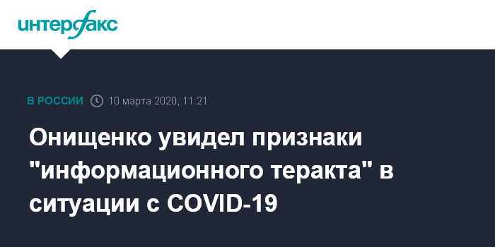 "Что касается информационной кампании (сопровождающей ситуацию с коронавирусом - ИФ), она имеет все признаки микст-гибридной информационно-террористической атаки", - сказал Онищенко, выступая с докладом на заседании президиума Российской академии наук во вторник.