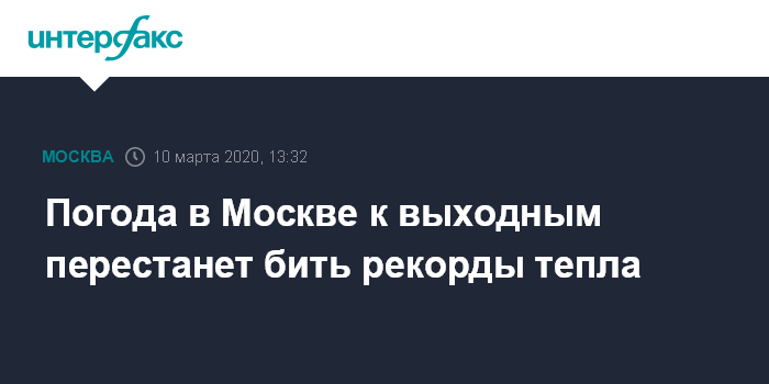 Москва. 10 марта. INTERFAX.RU - Рекордно высокие температуры в Московском регионе будут постепенно снижаться, заметное похолодание ожидается на выходных, сообщил научный руководитель Гидрометцентра России Роман Вильфанд.