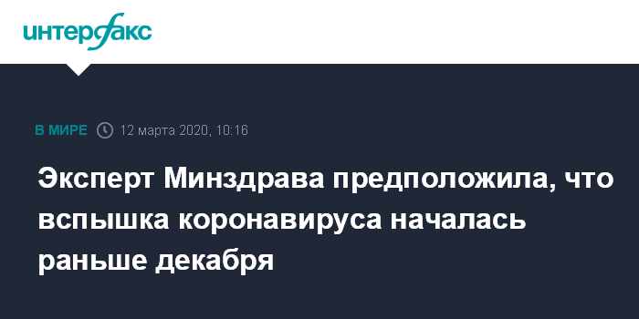 Москва. 12 марта. INTERFAX.RU - Анализ позволяет предположить, что вспышка нового коронавируса началась не в декабре, как сообщали китайские чиновники, а раньше, заявила на первом конгрессе инфекционистов УФО в Екатеринбурге главный внештатный специалист Минздрава по инфекционным болезням Елена Малинникова.